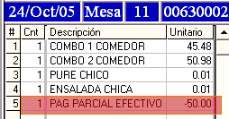Codigo01 permite Pagos Parciales o lo que es lo mismo, que una cuenta se pague una parte con efectivo, otra con tarjeta y otra con vales por ejemplo.