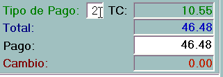 Si queremos realizar un segundo pago para liquidar la cuenta pero esta vez con tarjeta, entonces seleccionamos el tipo de pago número 2